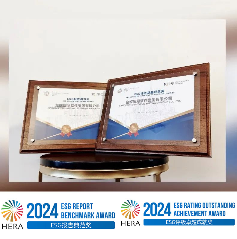 其次,在2024 粤港澳大湾区可持续发展论坛暨香港 ESG 报告大奖颁奖典礼上,金蝶荣获 ESG 评级卓越成就奖和 ESG 报告典范奖。这一全球首个获联合国贸易和发展会议特别提名的 ESG 奖项,彰显了金蝶在 ESG 实践中的深厚底蕴。